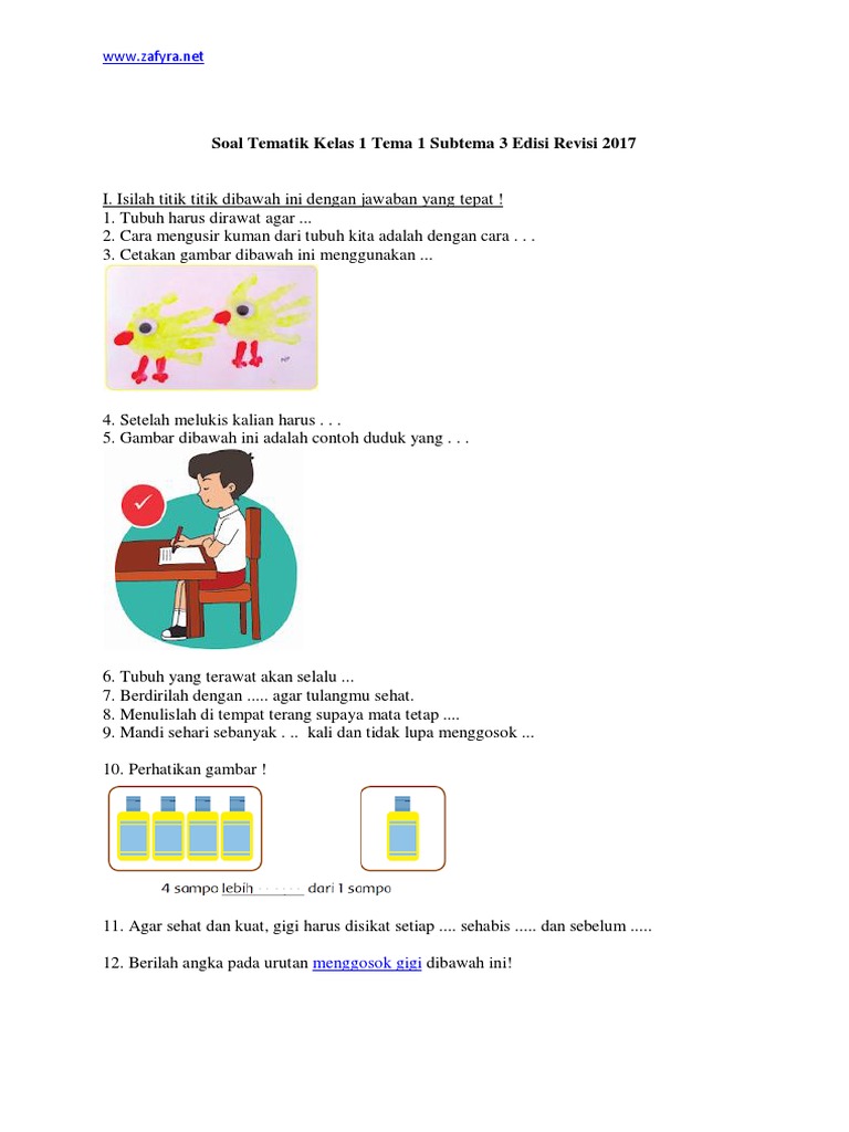 Jumlah soal pilihan ganda : Jul 15, 2018 · soal tematik kelas 1 tema 1 subtema 3 adalah kelanjutan dari soal tematik kelas 1 sd diriku. 2 日前 soal tema 3 kelas 1soal tematik kelas 1 sd tema 2 subtema 3 gemar menggambar dan kunci jawaban 21 juni 2019 25 april 2020 admin bimbel brilian 1 komentar latihan soal tematik kelas 1 sd kurikulum 2013 k13. Soal tematik kelas 1 tema 1 subtema 3 aku merawat tubuhku ini dapat digunakan untuk persiapan ulangan harian, pts atau pat. Bimbingan belajar brilian soal k13, soal tematik kelas 1.